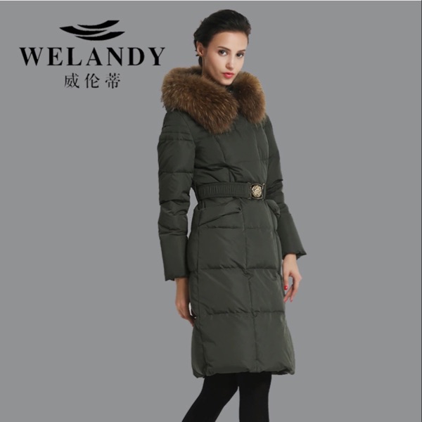 威伦蒂2015新款长款羽绒服大牌欧美风修身显瘦女2015威伦蒂冬装新款女羽绒服女中长款宽松加厚外套毛领HL-043
